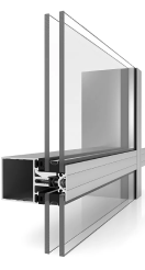 Полуструктурное остекление. Этот метод представляет собой комбинацию прочности стоечно-ригельной системы и эстетики структурного остекления. Здесь стекло или стеклопакет прикрепляются к несущему профилю при помощи узких прижимных штапиков, которые окантовывают все стекло по периметру, практически не затеняя его поверхности. В отличие от структурного остекления, этот метод позволяет использовать крупные стеклопакеты и интегрировать открывающиеся элементы в фасад.